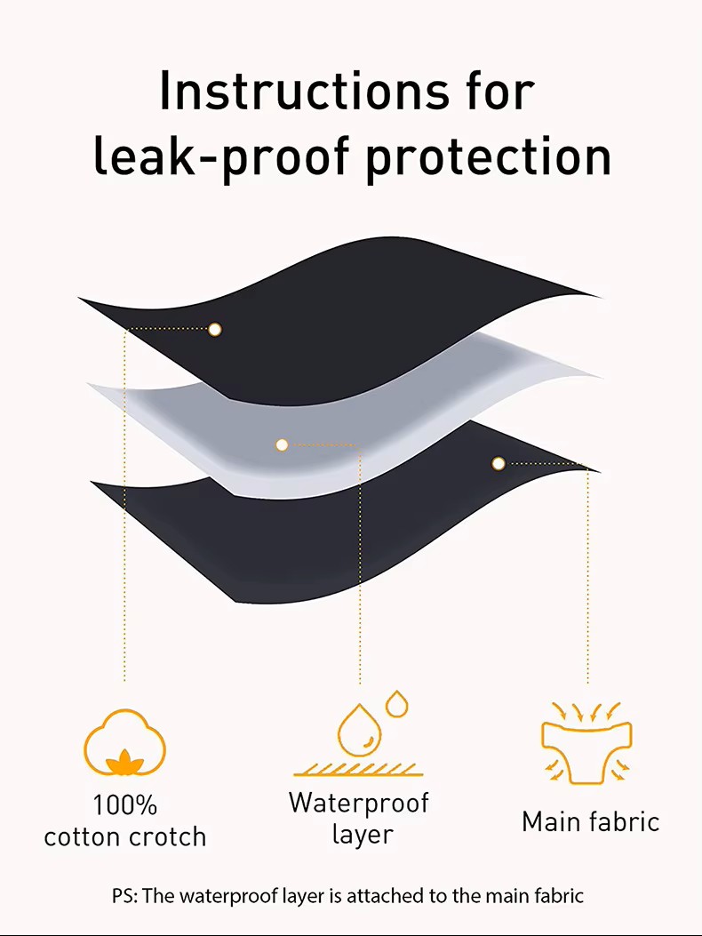 Braguitas de 95% algodón + 5% elastano, el algodón es transpirable contra tu piel, disfruta de un tacto suave y suave manteniéndose seco. Diseño de forro absorbente y a prueba de fugas.