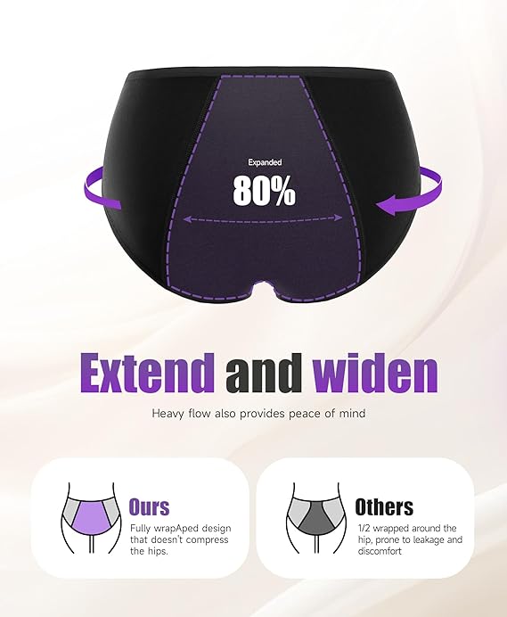 Protección extra de flujo pesado: Amplia cobertura en la parte posterior y un forro protector extendido en la parte delantera, ofrecen protección de respaldo para flujo pesado, asegurando que no queden manchas desordenadas en sábanas o ropa